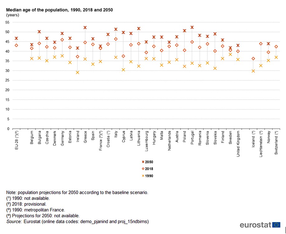 [3] https://ec.europa.eu/eurostat/documents/4187653/10208221/Median+age+of+the+population%2C+1990%2C+2018+and+2050/54ac3eeb-3372-bad8-2a13-63b141c45f0b?t=1572897459819